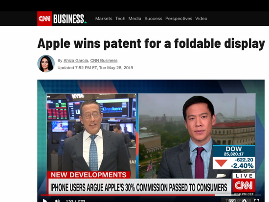 5月份据外媒CNN报道Apple已经获得了可折叠屏幕的专利,该屏幕可用于iPhone和其他设备。其描述了一种具有柔性或可弯曲的显示器和盖子的电子设备。